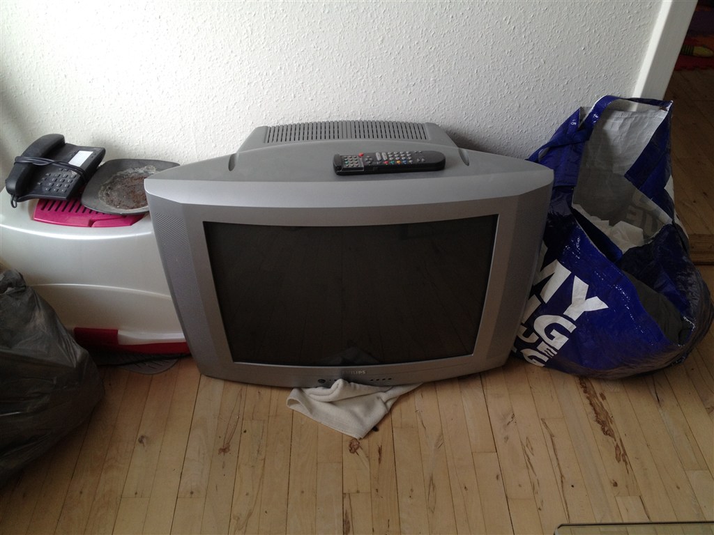 Vi sælger et billedrørs TV. Det fungerer upåklageligt og er perfekt til dvd eller playstation på et børneværelse.