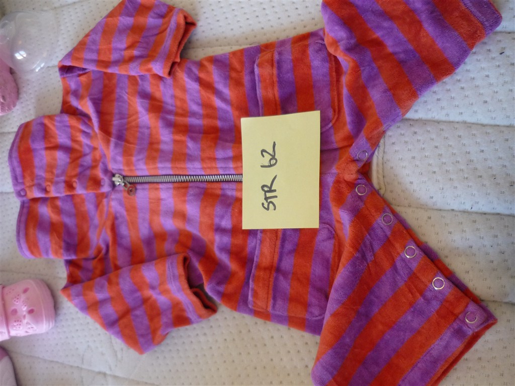 Billede 18+19+20+21 - Rigtig sødt velour sæt, som har været brugt få gange, på hætten er der nogle små sorte pletter (se billede) ved ikke om de går af i vask, men de er ikke af stor betydning. sælges derfor til
