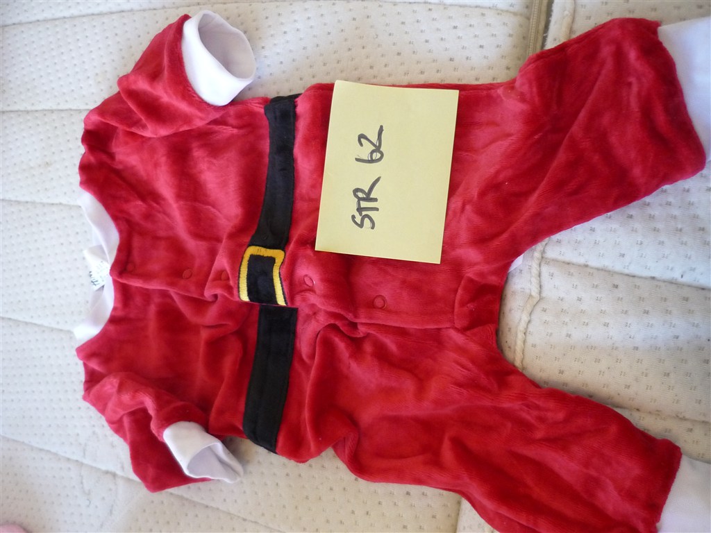 Billede 1+2 Heldragt med tekst "min første jul" så hvis nogen venter et vinterbarn, er denne måske noget. den er en lille smule "slidt" der hvor der står "jul"