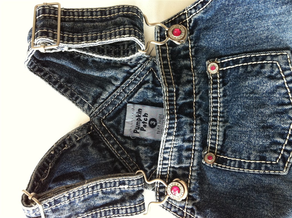 Billede 67+68 - Sød denim kjole fra PUMKIN PATCH i lidt slidt/forvasket model (den er lavet sådan) med pink knapper af sten (lidt ridset) str 3 år ( højde ca 100cm) Brugt få gange.