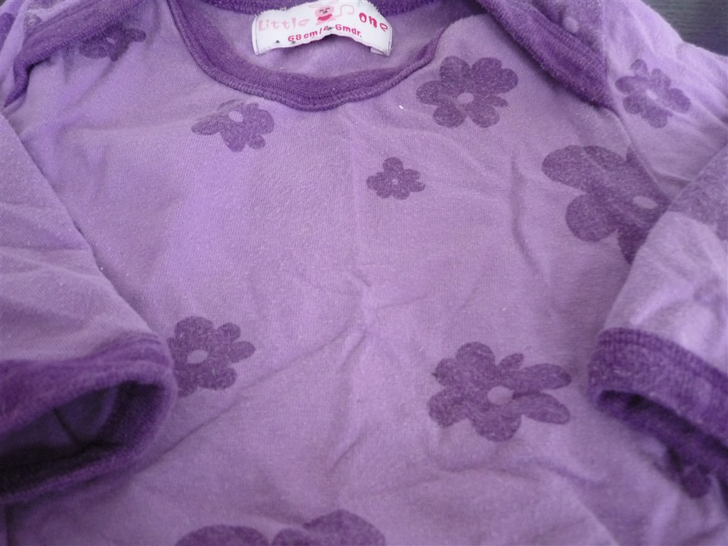 Billede 91+92+93 - Little one bodystocking med langt ærme i lilla og med blomster på, den er lidt forvasket, (se billede) men der er ingen huller og kan sagtens bruges 10 kr
