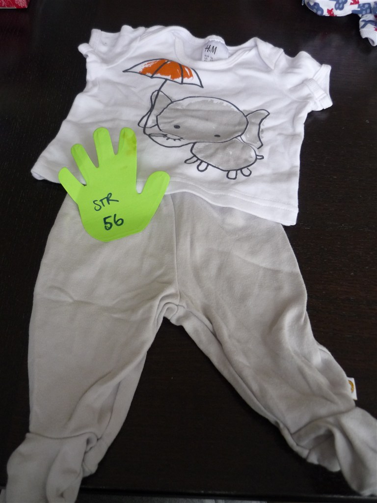 Billede 101+102 H&M T-shrit med elefant tryk på, med matchende grå bukser til. Aldrig brugt 25 kr