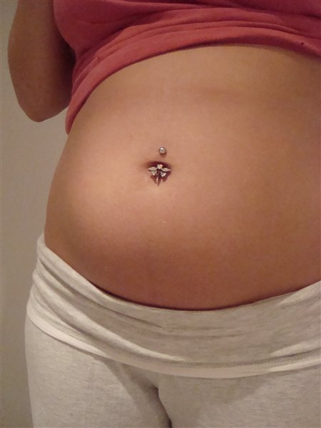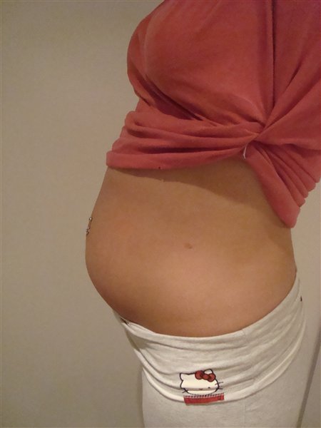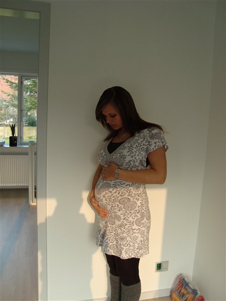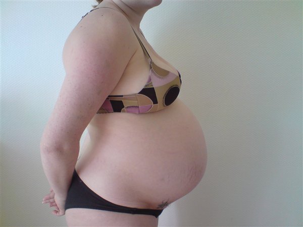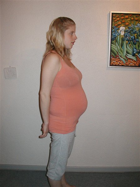 min mave så sådan ud i uge 34 og sidste billede 2 timer før vandet gik... pyha den var tung tilsidst