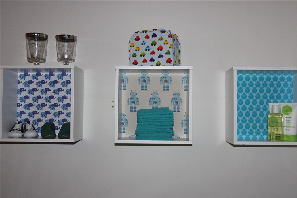 Junior skal bo i vores soveværelse, da vi regner med at få solgt og finde noget andet -´og derfor vil jeg gerne lave et hjørne der er hans, og derfor kigget efter netop sådan nogle bogkasser jeg selv kan pynte..