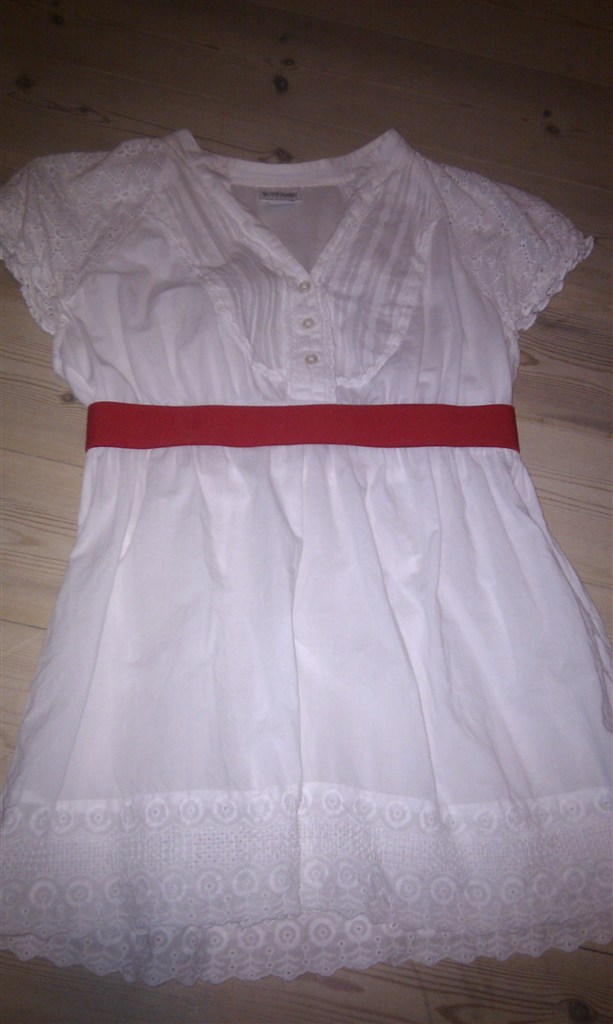 Rødt elastikbælte, fra Mamalicious (vist på den hvide top).
