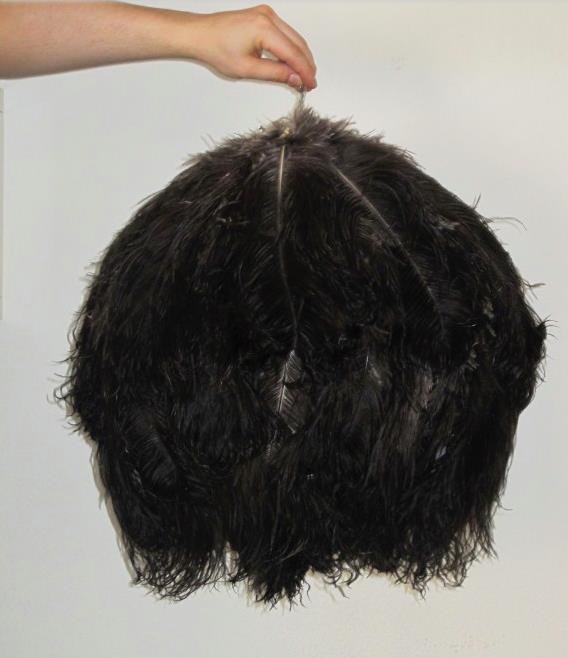 Den er håndlavet i chokoladebrune strudsefjer med rispapirslampe inderst. (ledning følger med)