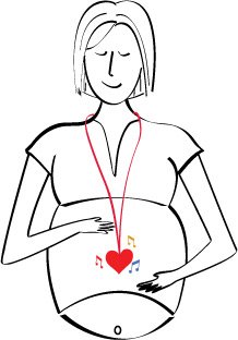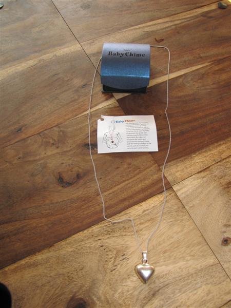 Der er en lille klokke inde i hjertet som babyen i maven vænner sig til at høre, hver dag (hvis man går med den). Den er købt i USA og jeg brugte den da jeg ventede den mindste og efter han blev født hang hjertet på hans vugge, såhan også hørte lyden uden for maven.