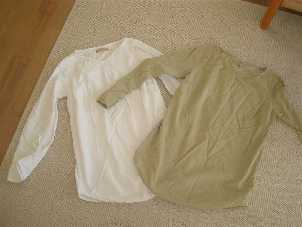 Buskerne kan selvfølgelig indstilles i størrelse rundt om maven, og lukkes med en 'stav'. Super fed detalje! Bluserne har plads til maven, V-udskæring og med små bindebånd ved ærmerne.