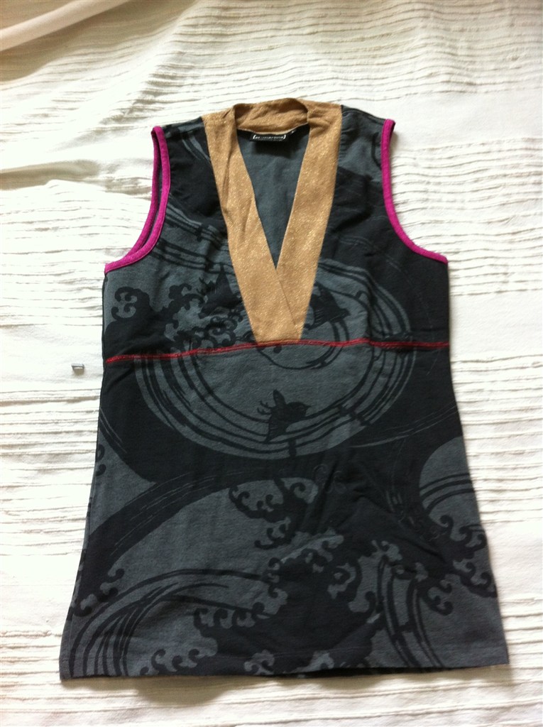 jeg vil gerne købe denne.. den sorte top med mønster og guld kant.. hvordan er den i størelsen??