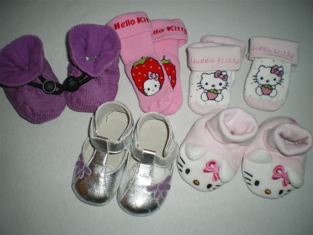 Billede 12: Melton + fuzzies + hello kitty. Aldrig brugt. 40 kr pr. stk (hello kitty futsko + strømper sælges samlet for 40 kr)