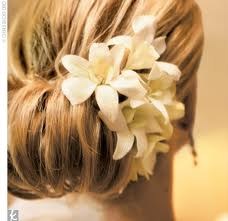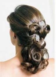 jeg har selv sat min søsters hår op til galla en gang, - hun ejer ikke en naturlig krølle, så det var lidt udfordrende. Men jeg skabte simpelthen en blomst med små og store kronblade af hendes hår, og brugte hårnåle med silikasten i som støvdragere i midten og i kanten. Det blev ret godt...