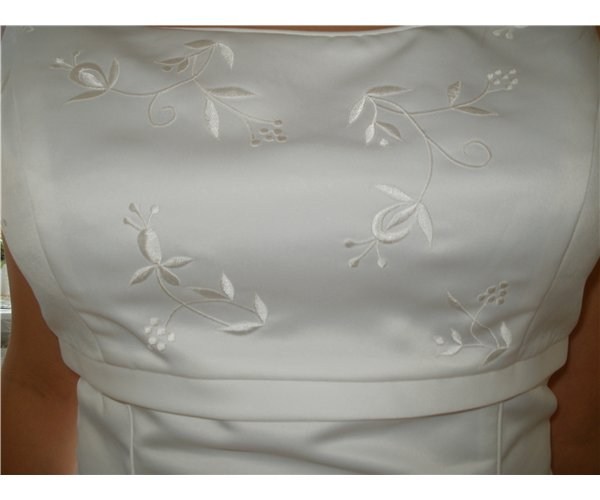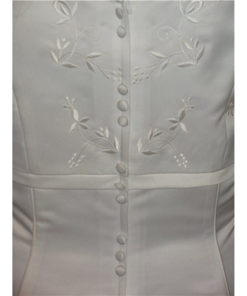 meget flot og enkel brudekjole, med en smule mønster oppe, og med lynlås bag som man ik kan se da der er pynte knapper bag.