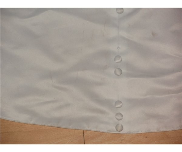 der er normalt 3 knapper af gangen, hele vejen ned bag på, men den næst nederste knap er røget af, man kan evt. sy en ny på. se på billede 5