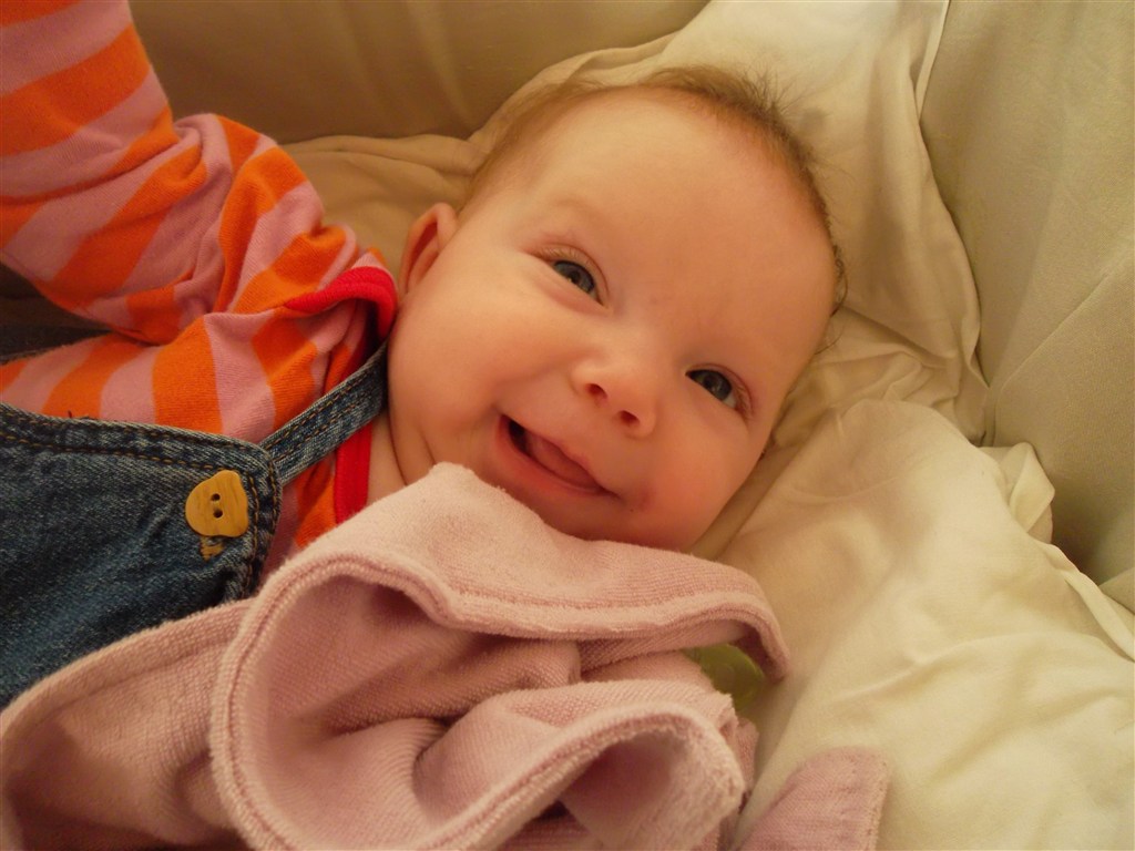Der er endnu ingen helt fast rutine i Lunas søvn. Hun er som regel først klar til at sove til nat omkring kl 21 (de sidste dage er den dog blevet 22-23 stykker, før hun er faldet i dyb søvn)