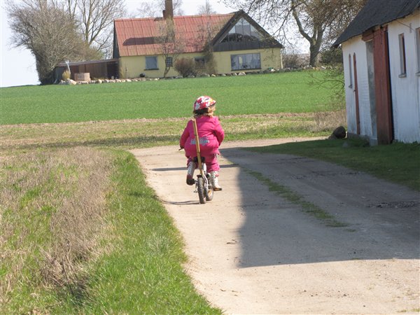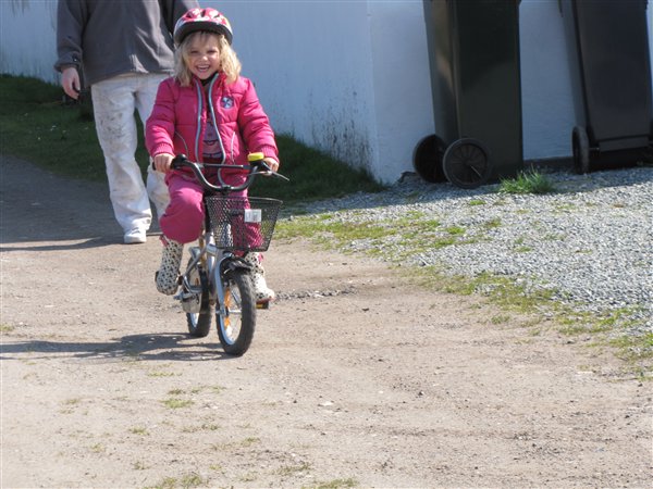 Har ryddet op, vasket tøj, plantet krukker, slået græs med håndskubber, fejet terrasse, hygget med unger og Ea har lært at cykle uden støttehjul i dag..
