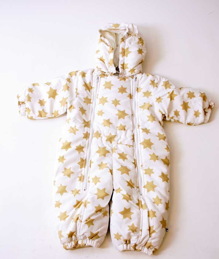 Min datter har enten sin fleecedragt, fleecejakke eller en tyk bomuldsjakke på når vi skal noget. Hun sover indendøre, så der har hun bare sit alm. tøj på. Jeg ville ikke investere i en flyverdragt på denne tid af året, det vare forhåbentlig ikke længe før vi får nogle varmere dage.