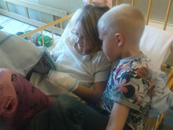 Da Filuca havde nyrebækkenbetændelse var hun også indlagt, men efter 3 dage måtte hun komme hjem, og så bare komme derind tre gange om dagen og få antibiotika... Det gjorde vi i 4-5 dage og det sku da lige planlægges, må man sige......
