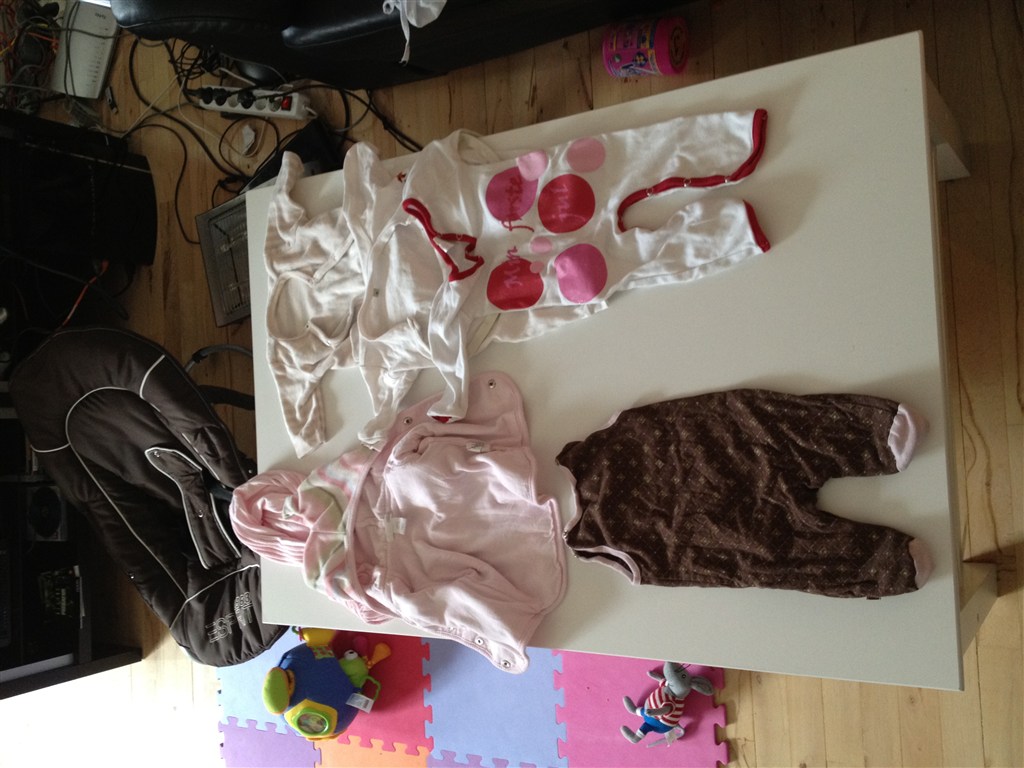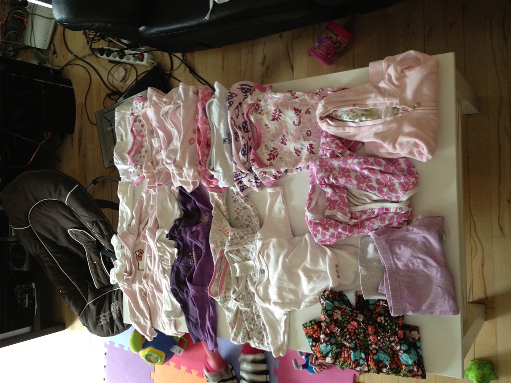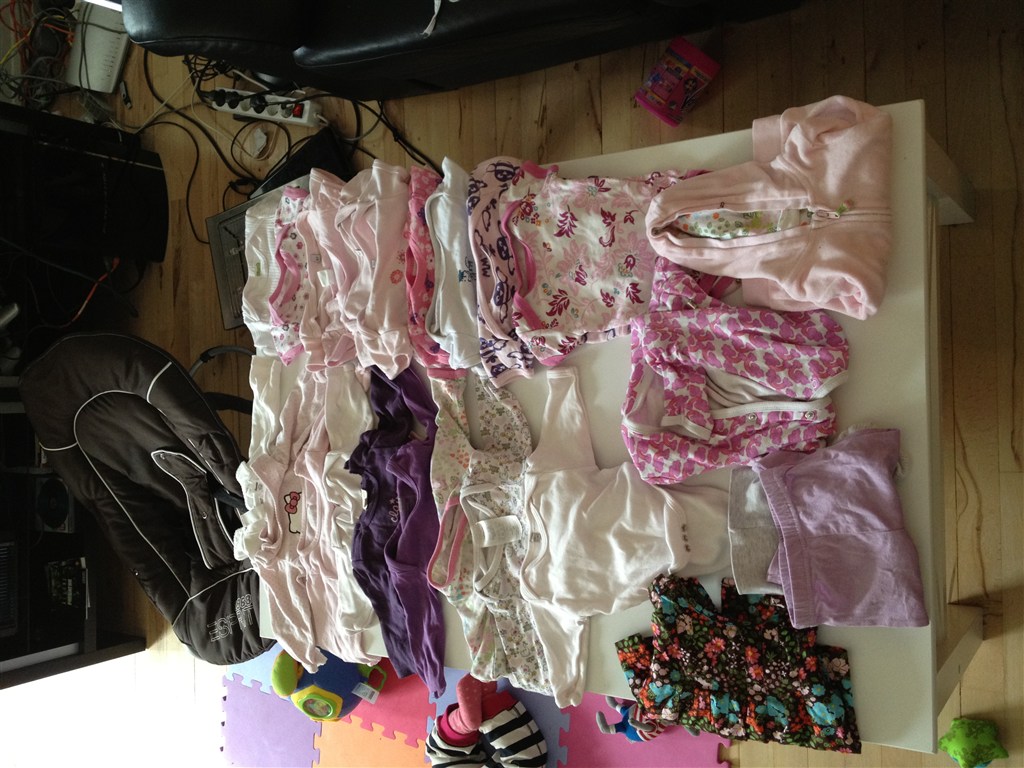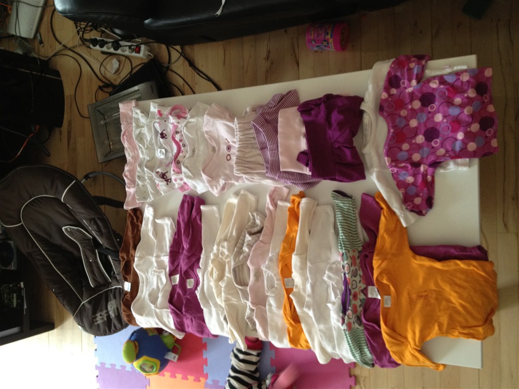 Str. 62 - 10 stk kortærmede bodies, 9 stk. langærmede bodies, 1 stk kjole, 2 stk bukser1 stk jakke og 1 stk. natdragt.