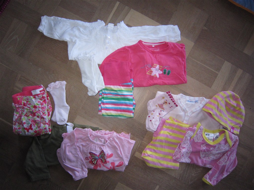 Foto 9, 10, 11 og 16) Komplet garderobe i str. 74 til forår og sommer, bestående af 50 dele. Pris 700,- (Sælger det helst som samlet pakke, da jeg har det til salg flere steder)
