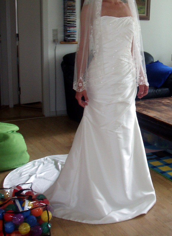 projekt-ønskebarn skriver: Her er min brudekjole, den er blevet syet af mn kusine som er brudekjole designer og jeg har selv valgt hvordan den skulel se ud Vi blev gift i sommers