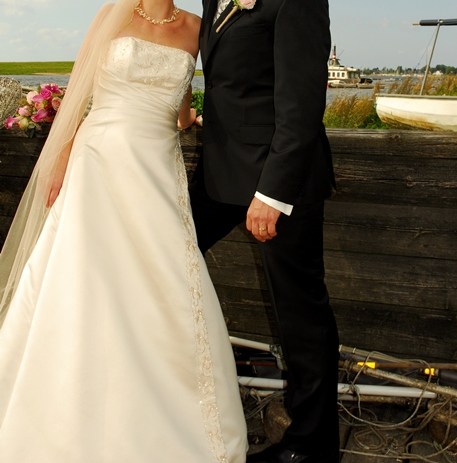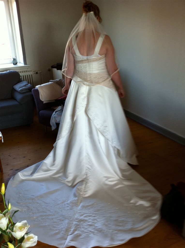 Jeg blev gift 2011 i August og fandt min brudekjole på den blå avis.. Den sad som var den syet til mig Den er forholdsvis gammel og mere creme farvet end hvid..