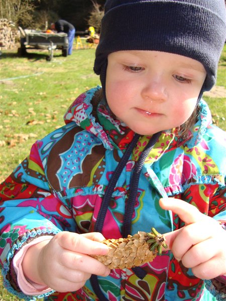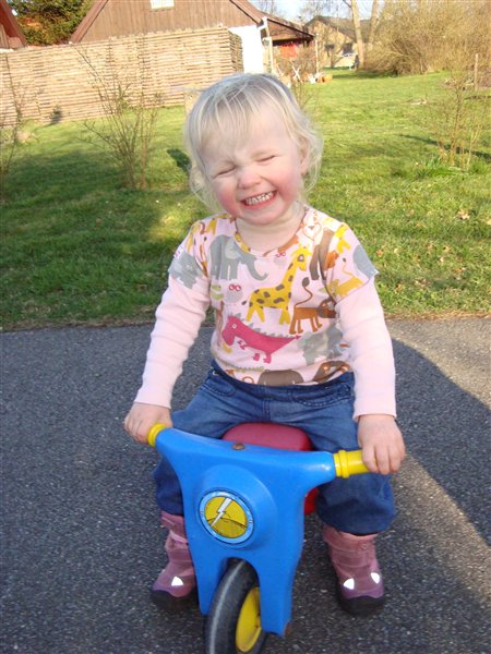 Nej, vi er lige kommet hjem fra bessernes sommerhus, og Signe har været inde og tage jakken af, men er kommet ud igen, og mens jeg pakker bilen ud, begyndte de at lege... Derfor