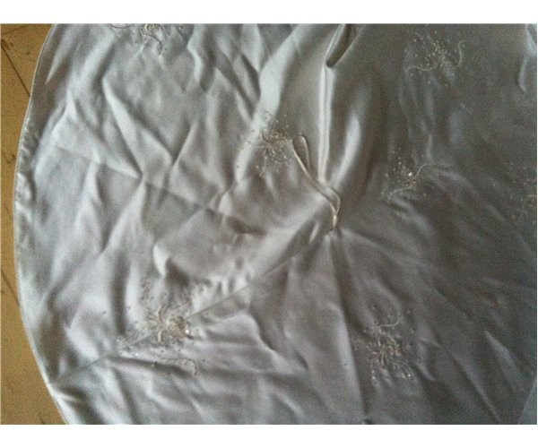 Den er lidt krøllet på slæbet fordi den har været pakket ned, men det kan selvfølgelig hurtigt rettes ud igen.