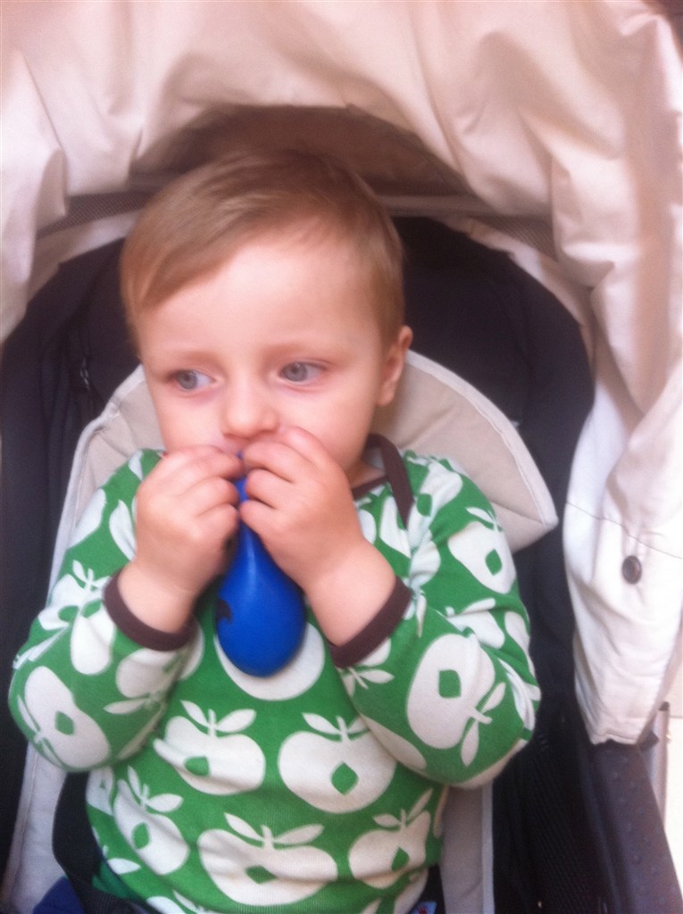 Så nu er den unge mand blevet klippet, og han syntes det var meget sejt at sidde i en fin bil imens han blev klippet, og samtidig kunne han se byggemand bob på tv..