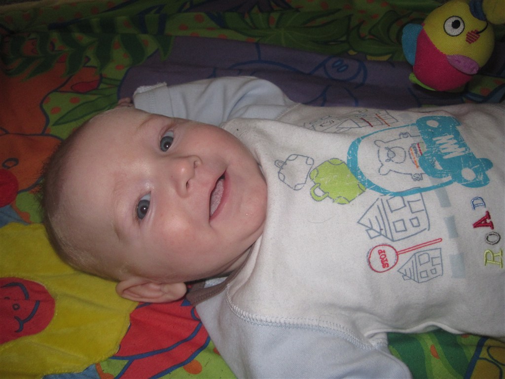 Han storsmiler og griner til gud og hvermand, men mest storesøster som bare knuselsker ham.