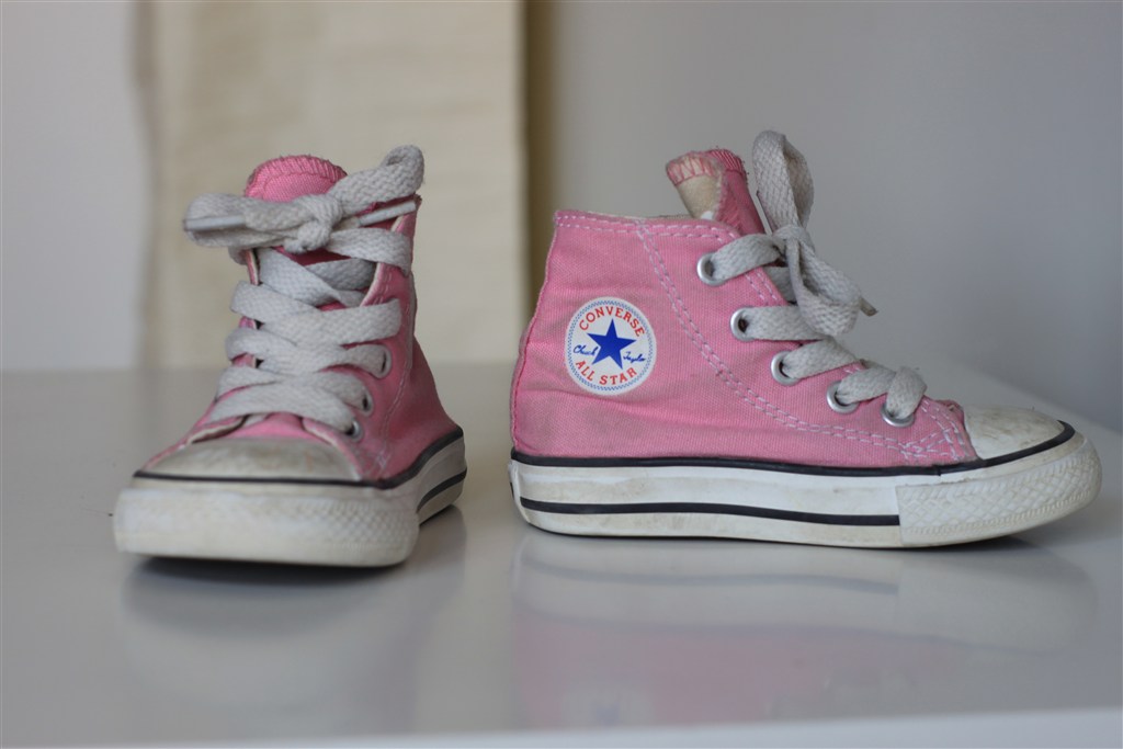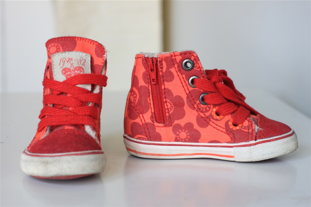 1. Converse størrelse 5, svarer til en størrelse 22. De er ikke meget brugt, men er lidt beskidte. De kan sagtens tåle en tur i vaskemaskinen