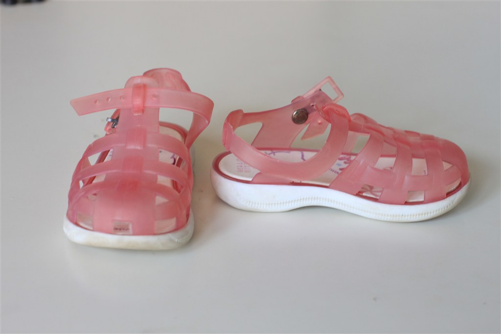4. Lyserøde gummi sandaler med Hello Kitty motiv, rigtig søde og dejlige til sommer-vejr. Vi brugte dem på stranden! De er fra Zara og en størrelse 20. 60 kr.