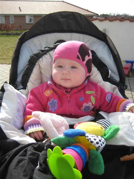 Så Benjamin sad op i dag men vi var ude at gå... Rigtigt hyggeligt...