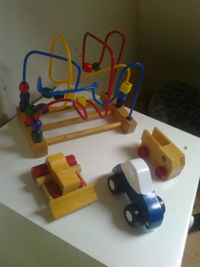 Alt muligt forskelligt træ legetøj, træ legetøj, træ legetøj... Og lidt tøj + "himmel" og sån lidt andet