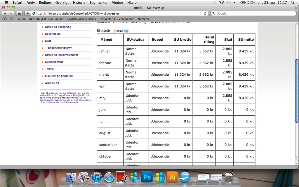 Hvis man så går ned til maj måned står der at jeg selvf er uden for udd.. Der er heller ikke noget beløb i brutto su, samt tillæg..