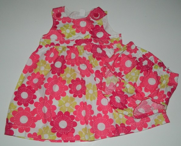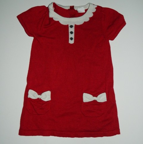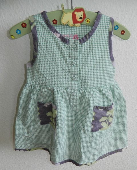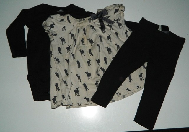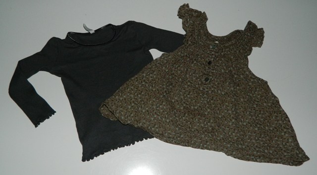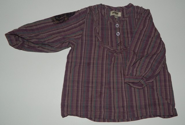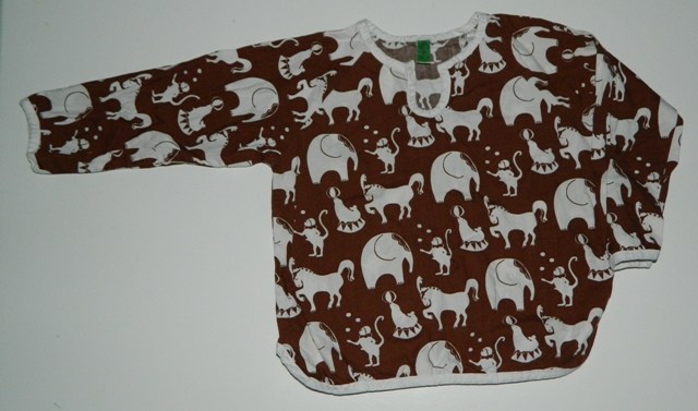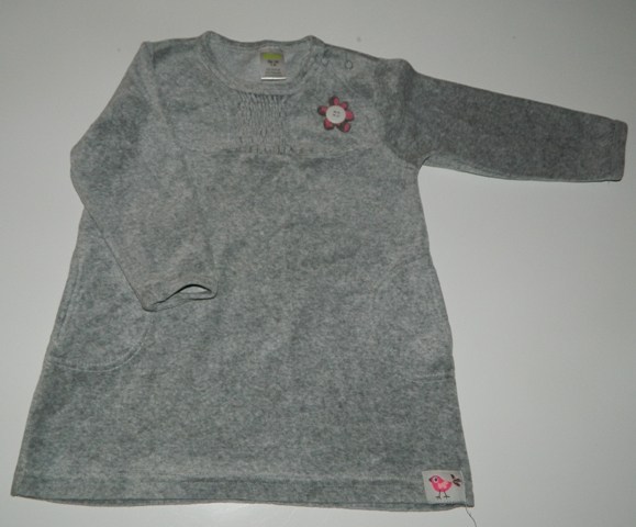 Tunikaen er str. 74 men den er til den store side, min datter der er på vej op i 86 kan faktisk stadig passe den