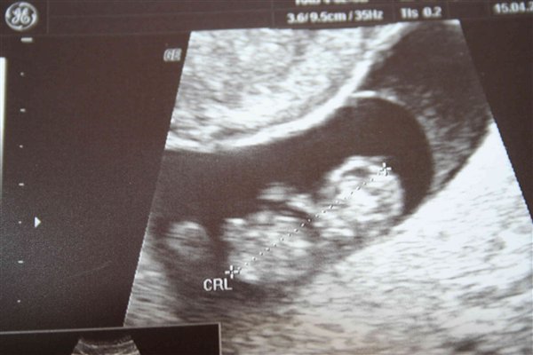 Så nåede jeg over mit "kritiske punkt" 9+1 og var til en sort/hvis scanning til 300 bobs i dag! Jeg så og hørte hjertelyd og en lille hånd der fyrede rundt