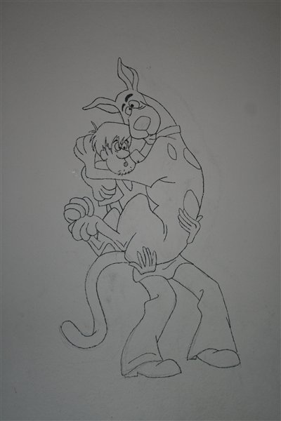 der er ikke brugt projektor, da jeg skulle gøre det hurtigt, så det er frihånd. i skal heller ikke se den tegning jeg har tegnet efter, så passer det hele ikke