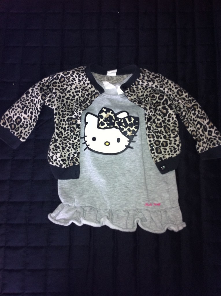 hello kitty grå kjole og leopard cardigan: brugt få gange 50 kr