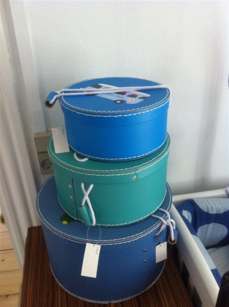 Er helt pjattet med de der blå kasser på første billede! Rigtig fine og drengede uden at blive alt for tuttenuttede