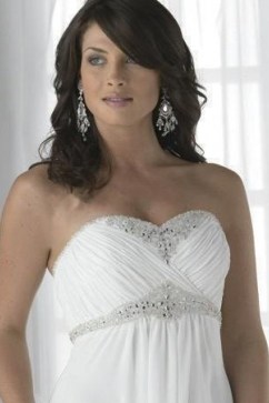 den er fra str 38 men kan gå op til en ca 44 da det er med snørrer bag på den er 165 cm lang og kan bæres af gravid var selv i uge 19 og ku ha den på, har ikke billeder af mig selv i denne kjole da jeg jo ik fik den på, men her er 3 billeder