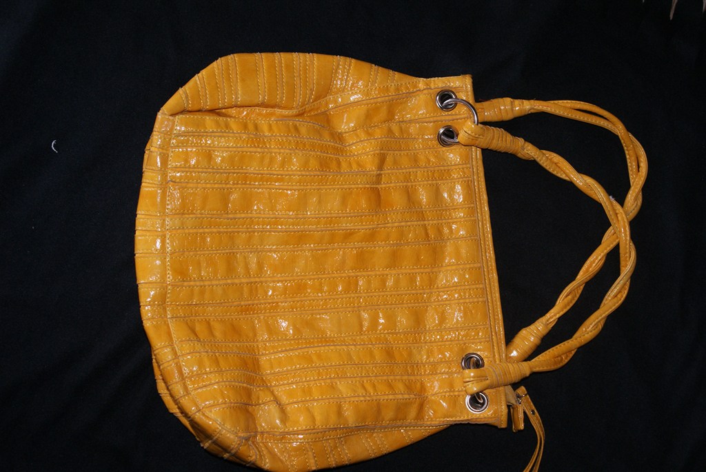Den gule taske: jeg ved ikke helt hvad den er lavet i, men det er i hvert fald ikke plastic, som jeg tænker plastic