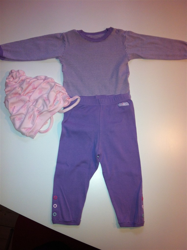 sødt sæt der er brugt få gange i str 68/74, hatten er en str 80 og er aldrig brugt..