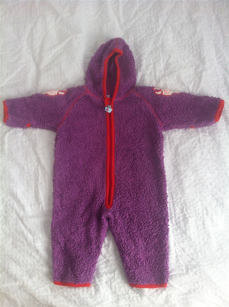 Heldragtene er str 62 og teddy fleecen er str 68..