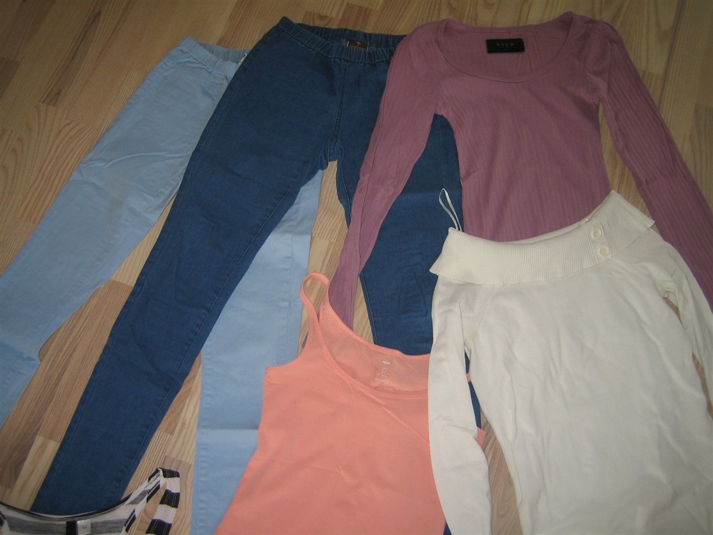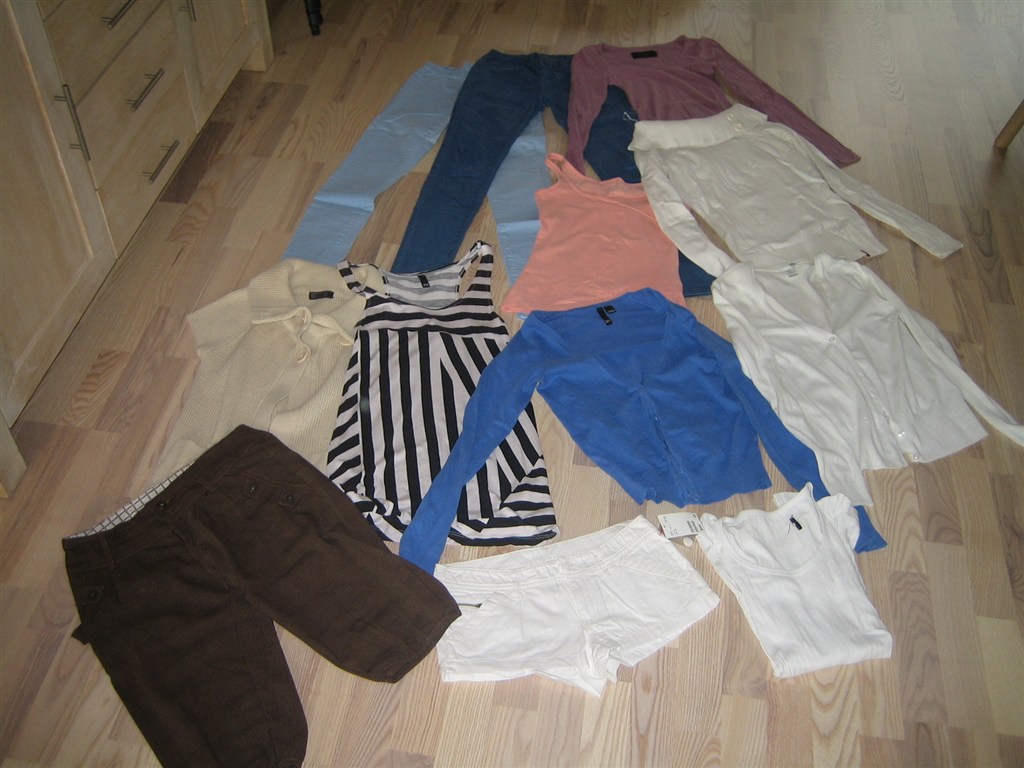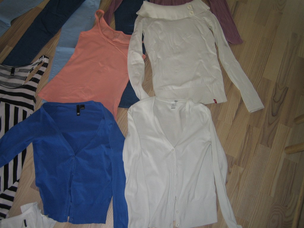 Rydder op i skabet og vil gerne af med det hele, derfor sælges det billigt. sælger det helst samlet. Den hvide bluse nederst i billedet har lidt mørke pletter under armene og gives gratis med. Noget er brugt meget lidt, noget nyt med mærke, og andet er god men brugt.
