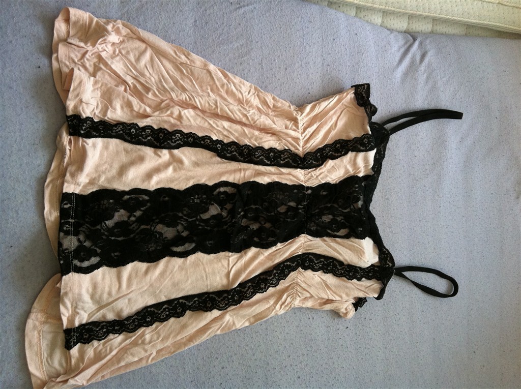 Billede 34+35: Lyserød/sort blondetop fra London i str 42, men ville sige en dansk str L. Aldrig brugt. BYD!