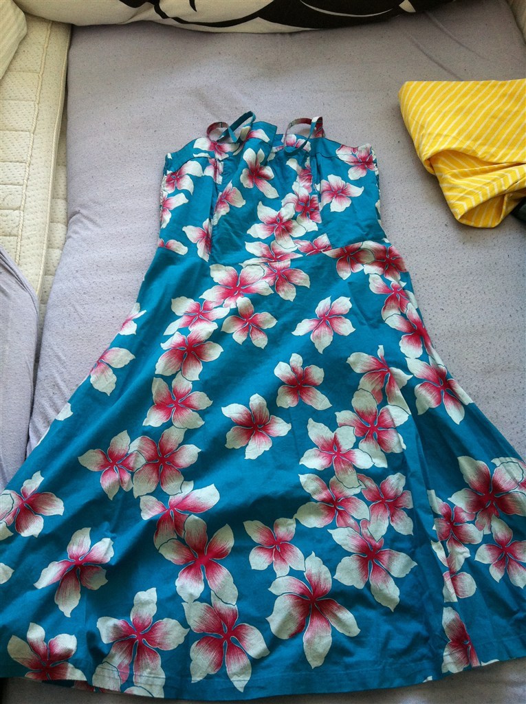 Den sorte kjole med flæser foran, har jeg fået klippet mærket af, men vil mene det er en medium/large og meget almindelig for en Vero moda str.