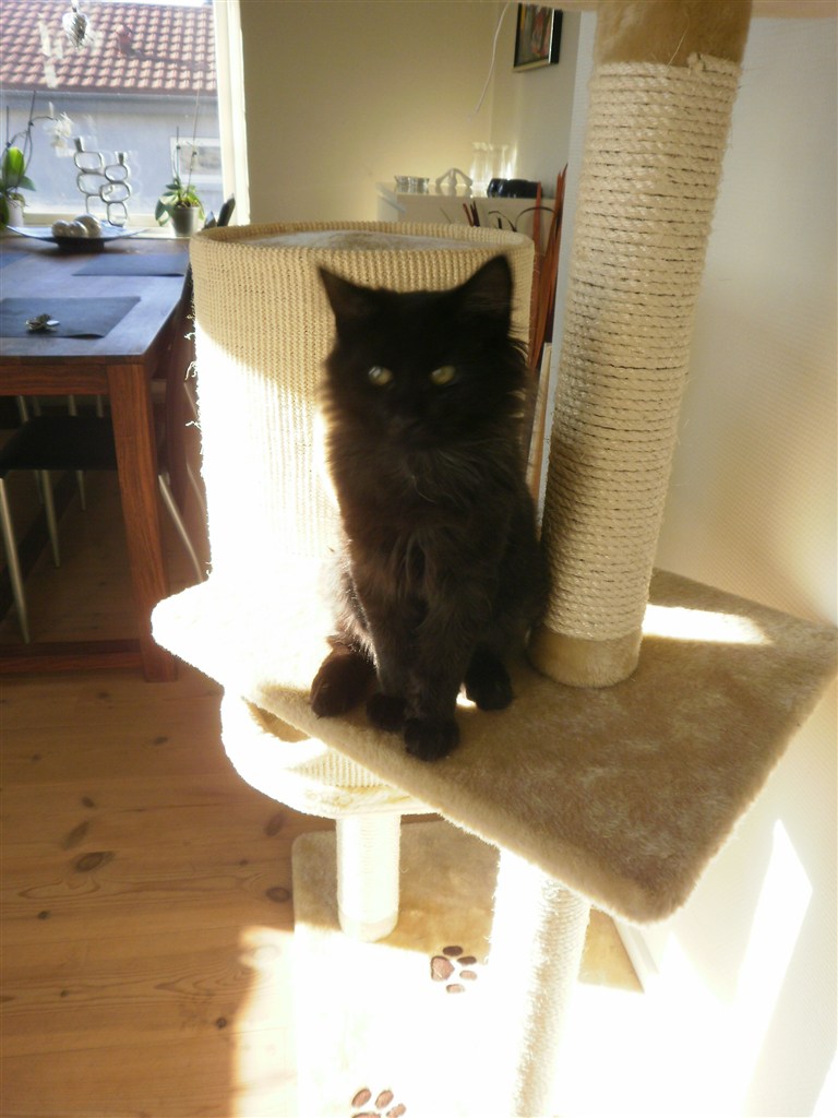 Den første er dværg og den fik vi, fordi den er overnuttet og forkert proportioneret, og vi bilder os ind, vi gjorde den en stor tjeneste, eftersom den var gårdkat og vi er ret sikre på, den ikke ville have overlevet i nærheden af en landevej. (Yep, de korte ben bærer den altså ikke så hurtigt som andre katte.)