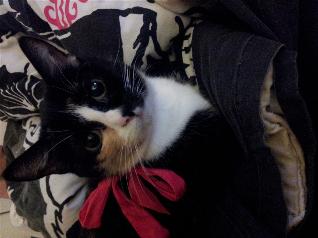 Katten var skrækslagen og jeg løb dem i møde med håndklæder og dyner, for at holde dem varme. Jeg stak det forfrosne kræ direkte ind på brystet, så den kunne få min kropsvarme, og i samme sekund slappede den af og begyndte at spinde, og siden har den været min skødekat. Ret unfair, eftersom det var min forlovede der reddede den.