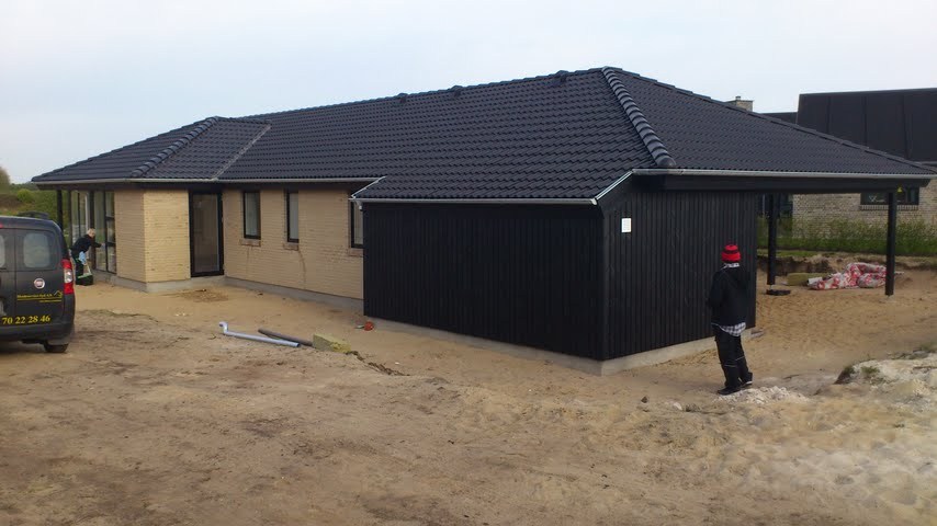 En del af indkørslen er også blevet lagt - i første omgang så meget, at vi kunne gå tørskoede ind lørdag, så vi ikke slæbte en masse sand med ind. Men jeg glæder mig nu, til resten af fliserne bliver lagt (terrasse og gang hele vejen rundt om huset), så vi kan få havemøblerne ud. Bordet står pt. i stuen.