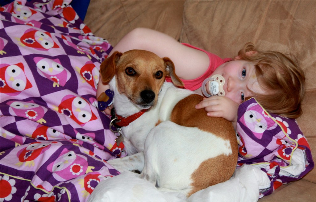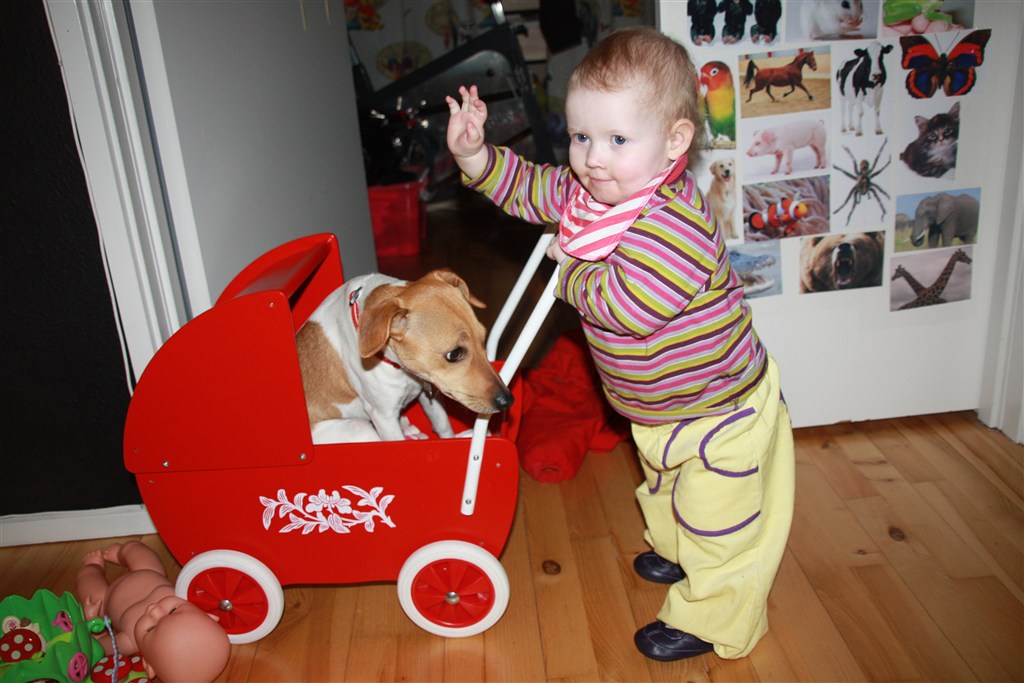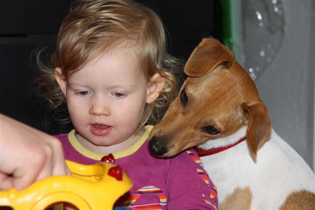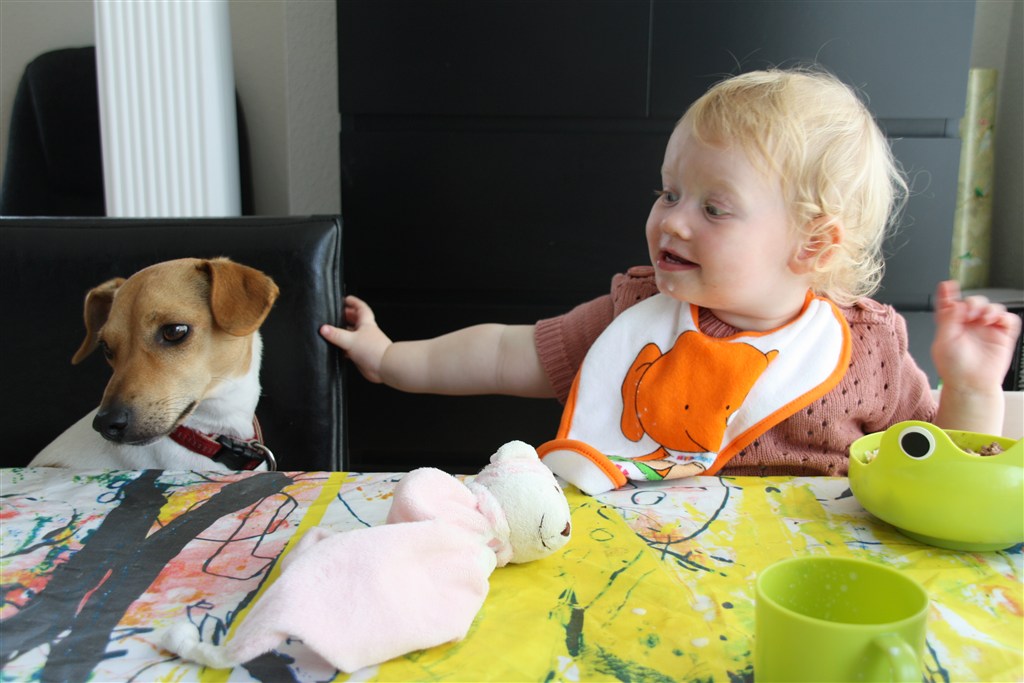 Vi fik hunden, Freya, da Mynte var 3 mdr. og siden den dag har de været bedste venner